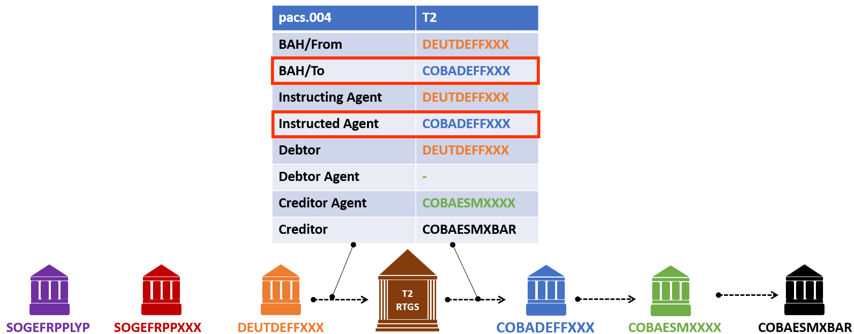 Of course, this pacs.004 will be settled in T2 as COBADEFFXXX is a Direct T2 participant.